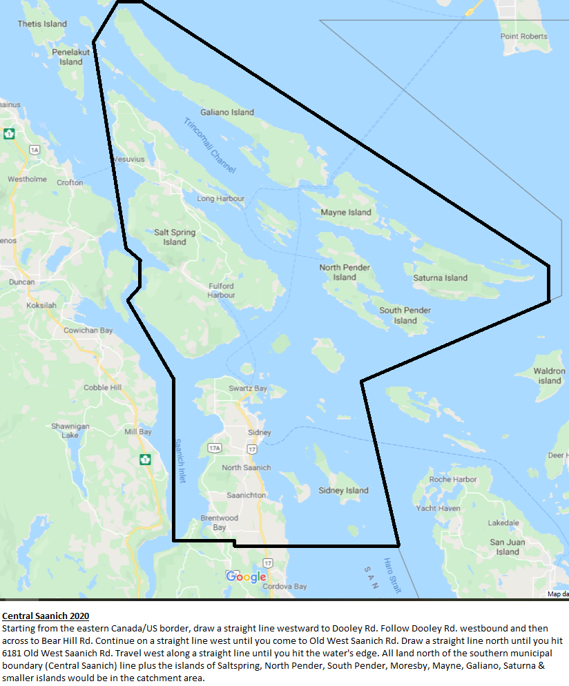 For Minors through Majors (Ages 9-12) our catchment includes the districts of Central Saanich, North Saanich, Sidney and the Southern Gulf Islands (see picture below). You must either reside or go to school within the catchment area. If you require clarification please contact our registrar to find out more.